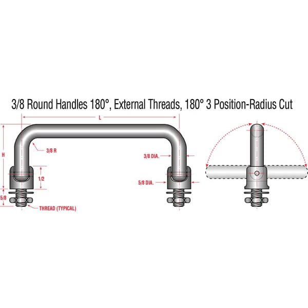 Handle SLNT Internal Threaded 0832 3/8 X 2 X 6 (Discontinued)