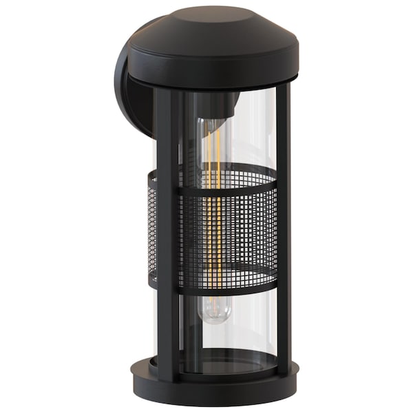 Erma Lantern-Style Outdoor Wall Sconce, E26 Socket 40W Max Glass Cylinder Black Finish