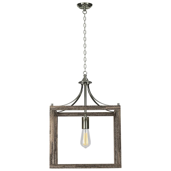 Ambiate Loggia Rustic Farmhouse Pendant, Gray Wood Grain Metal Open Cage Design, Single Medium Base E26 Socket, for Entryways, Kitchens, Dining Areas, Living Spaces, Dimmable, ETL Listed AL10005P1