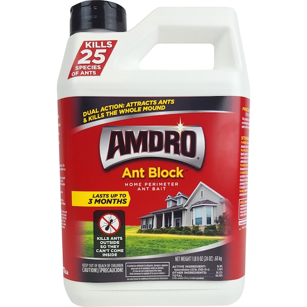 Amdro Ant Block Home Perimeter Ant Bait gives you the power to kill listed ant species outside before they enter your home. Once you lay the bait, worker ants carry it back to the mound thinking its food. Once the queen eats it, the colony is doomed because she can no longer produce worker ants. Use it on lawns, landscaped areas or around structures. Each bottle contains enough bait to treat the average home up to six times.