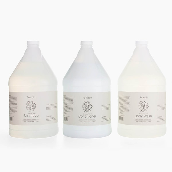 Amenie Lavender Mint Shampoo (1 Gallon), Amenie Lavender Mint Conditioner (1 Gallon), Amenie Lavender Mint Body Wash (1 Gallon)