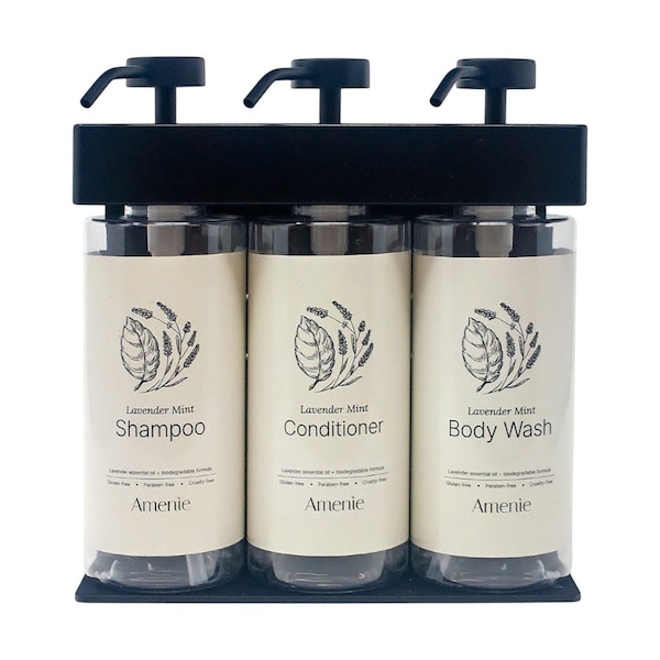 Amenie Lavender Mint SOLera Dispenser, Refillable 3-Chamber Pump for Easy Dispensing Tidy, functional, and eco-conscious, the Amenie Lavender Mint Oval SOLera 3-Chamber Dispenser is the perfect addition to any busy hotel, spa, or wellness center. Its sleek, space-saving design keeps shower essentials like shampoo, conditioner, and body wash neatly organized while helping reduce plastic waste with triple, refillable chambers. Constructed from durable, food-grade PET, its built to withstand the hustle and bustle of high-traffic environments, offering long-lasting performance. With a quick-refill system and secure wall-mounted installation, this dispenser ensures minimal downtime and consistent product availability. Available in Satin Finish and Black, it blends seamlessly with modern bathroom decor, providing both style and function while reducing the need for frequent refills with its generous 36 oz capacity. Ideal for sustainability-focused businesses, this dispenser works perfectly withAmenie Lavender Mint Sampler, keeping your bathrooms stocked and your guests satisfied.