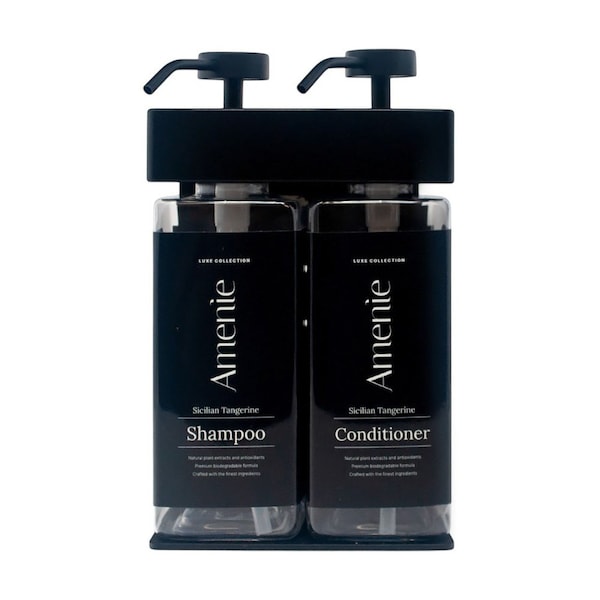 Luxury Hotel Amenie Dispenser, 2-Chamber System with Secure Stainless-Steel Mounting Theres luxury, and then theres the Amenie Sicilian Tangerine SOLera Rectangle 2-Chamber Refillable Dispenser, a statement of refinement that transforms any hospitality space into an experience of effortless sophistication. Designed for the most discerning establishments, this wall-mounted dispenser offers a sleek, clutter-free aesthetic while delivering the perfect balance of convenience and eco-conscious design. The two elegantly labeled chambers house premium bath essentials, ensuring every guest encounter is infused with indulgence. Available in a choice of Satin Finish or Black, its timeless silhouette seamlessly blends into the worlds finest hotels, spas, and resorts.