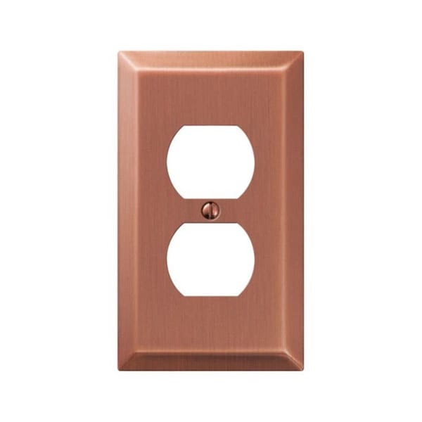 Features Stamped Steel 1 Duplex Wall Plate Stamped steel 1 duplex outlet 2 plugs Finish: Antique Copper The perfect finish for any room, simple elegant design Includes matching screws for an easy installation Specifications Dimension: 7.5in H x 3.9in W x 0.3in L Weight: 0.1 lbs