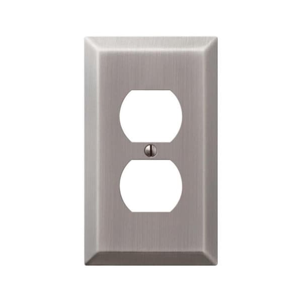 Features Stamped Steel 1 Duplex Wall Plate Finish: Antique Nickel 1 duplex outlet 2 plugs Includes matching screws for an easy installation Specifications Dimension: 7.5in H x 3.9in W x 0.25in L Weight: 0.2 lbs