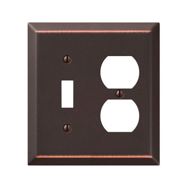 Features Number of Gangs: 2 gang Color: Aged Bronze Material: Stamped Steel Switch Style: Toggle/Duplex Product Type: Wall Plate Number in Package: 1 pk Number of Switch Openings: 1 Number of Outlet Openings: 2