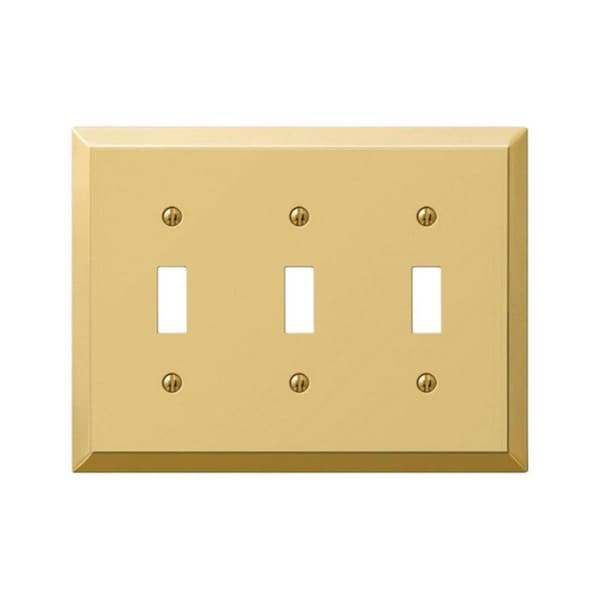 Features Number of Gangs: 3 gang Color: Polished Brass Material: Stamped Steel Switch Style: Toggle Product Type: Wall Plate Number in Package: 1 pk Shape: Rectangle Number of Switch Openings: 3