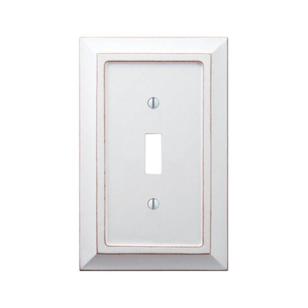 Features Savannah Wood Wall Plate 1 rocker/GFCI Finish: White Single-gang wall plate covers a toggle switch Wood construction Use to complement room styles and designs Specifications Dimension: 7.5in H x 3.9in W x 0.5in L Weight: 0.2 lbs