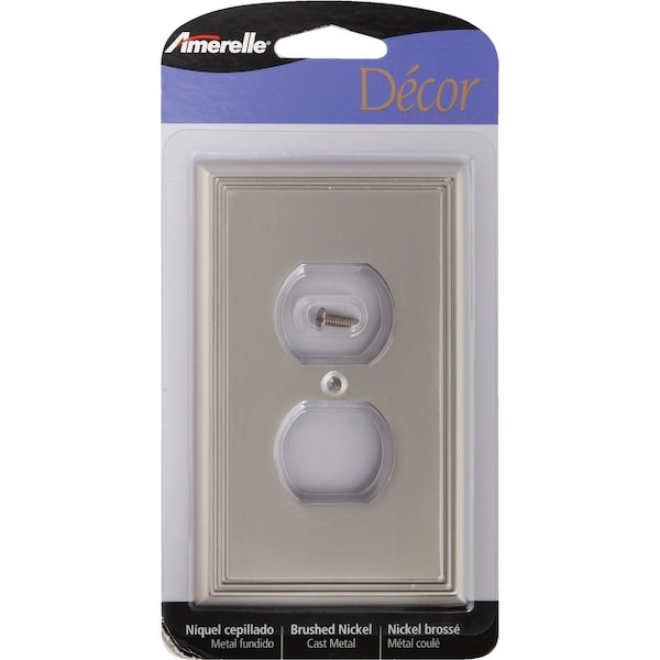 Metro Line 1-Gang Cast Metal Outlet Wall Plate Brushed Nickel