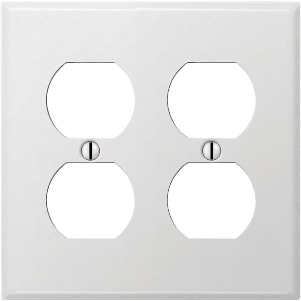 PRO 2-Gang Stamped Steel Outlet Wall Plate, Smooth White