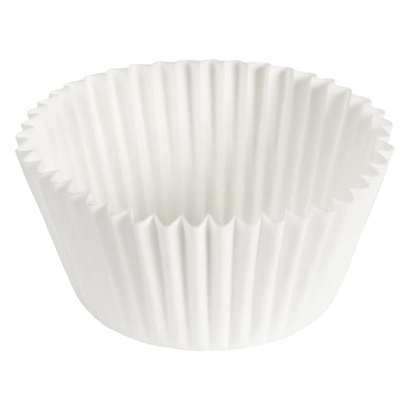 Serve your delicious confections--from cupcakes to muffins and more--with help from our 4.5" White Fluted Baking Cups 10000 ct. These 2-ounce round white baking cups measure 4.5" blank (overall diameter), 1-7/8" base and 1-5/16" wall. White fluted baking cups provide a convenient and sanitary, single-serve disposable option for your tasty treats. Plus, they're Kosher Certified--a stamp of the highest quality and purity. Grab these for your bakery, restaurant, or event today!