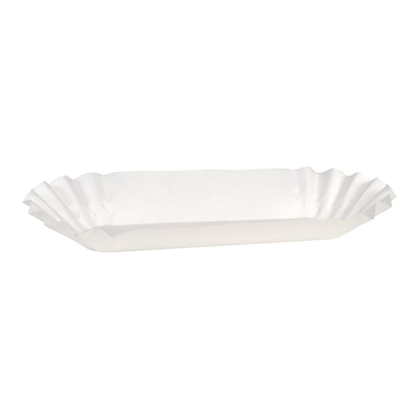 Serve delicious hot dogs and more with help from our 6" White Fluted Hot Dog Trays. These hot dog trays are made from a mediumweight paper and feature closed ends, perfect for holding a dog with all the fixings. These provide a convenient, sanitary, single-serve disposable option for serving your guests. Plus, they're Kosher Certified--a stamp of the highest quality and purity. Grab these for your restaurant, food truck, or concession stand today!