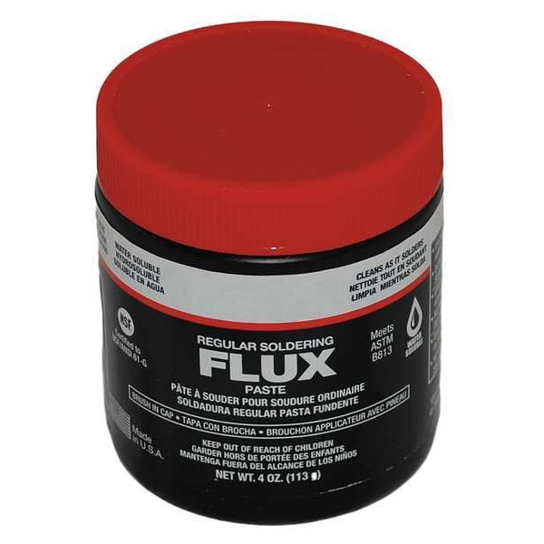 Flux, Container Capacity 4 oz, Container Type Brush Cap Jar, Form Paste, Flux Type Water Soluble, For Solder Type Lead Free, Standards ASTM B813, Application Soldering, Clean Up Type Water, Features Cleans Pipe Upon Application, Non-Toxic, Lead Content Lead-Free