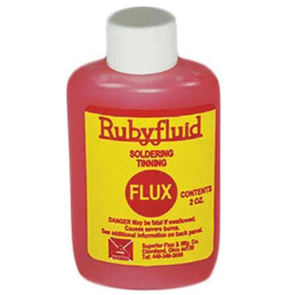 Soldering Flux, Container Capacity 2 oz, Container Type Bottle, Form Liquid, Maximum Active Temperature 600 Degrees F, Flux Series Rubyfluid, Flux Type Water Soluble, For Material Type Brass, Copper, Stained Glass, Steel, Tin, Standards RoHS, Application Plumbing, Soldering, Clean Up Type Water, Features Non-Fuming, Self-Cleaning, Lead Content Lead-Free, Specific Gravity 1.278
