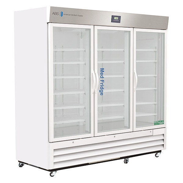 Refrigerator, Application - Laboratory Refrigerator/Freezer Pharmacy, Laboratory Refrigerator/Freezer Style Upright, Refrigerator Capacity (Cu.-Ft.) 72 cu ft, Refrigerator Temperature Range (C) 2 Degrees to 8 Degrees , Overall Depth 34 in, Overall Height 6 3/4 ft, Overall Width 6 3/4 ft, Defrost Cycle, Refrigerator Temperature Range (F) 36 Degrees to 46 Degrees , Amps 10, Hz 60, Voltage 115V, Color White, Door Hinge Sliding, Door Type Swing Glass, Door Material Glass, Number of Doors 3