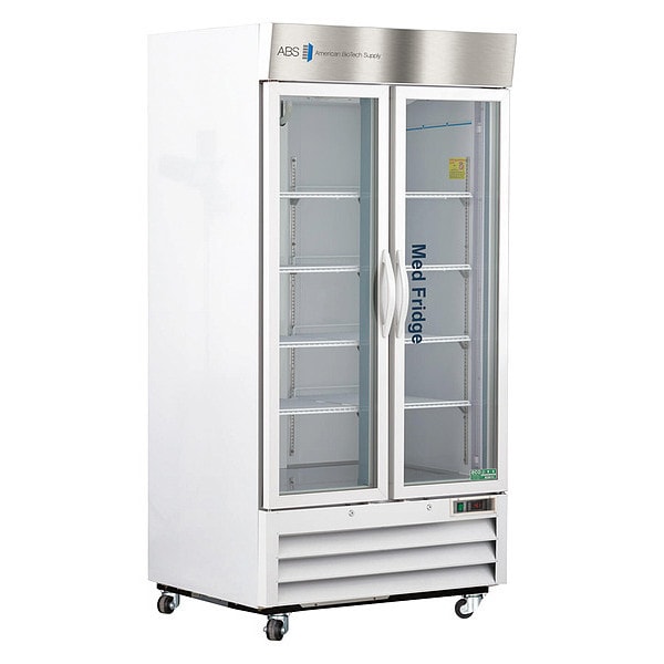 Refrigerator, Application - Laboratory Refrigerator/Freezer Pharmacy, Laboratory Refrigerator/Freezer Style Upright, Refrigerator Capacity (Cu.-Ft.) 36 cu ft, Refrigerator Temperature Range (C) 2 Degrees to 8 Degrees , Overall Depth 34 3/4 in, Overall Height 6 3/4 ft, Overall Width 39 5/8 in, Defrost Cycle, Refrigerator Temperature Range (F) 36 Degrees to 46 Degrees , Amps 9, Hz 60, Voltage 115V, Color White, Door Hinge Left and Right, Door Type Swing Glass, Door Material Glass
