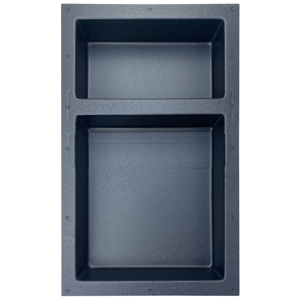 Matte finish for great tile adhesive and grout adherenceLuxurious 4inch depth to accommodate oversized bottlesDesigned to accommodate Bluetooth speakers, various shampoo sizes and 12 oz drinksCountersunk drill guides set up for standard 16 frame spacing or custom mountsMade of thick, sturdy, HIPS plastic
