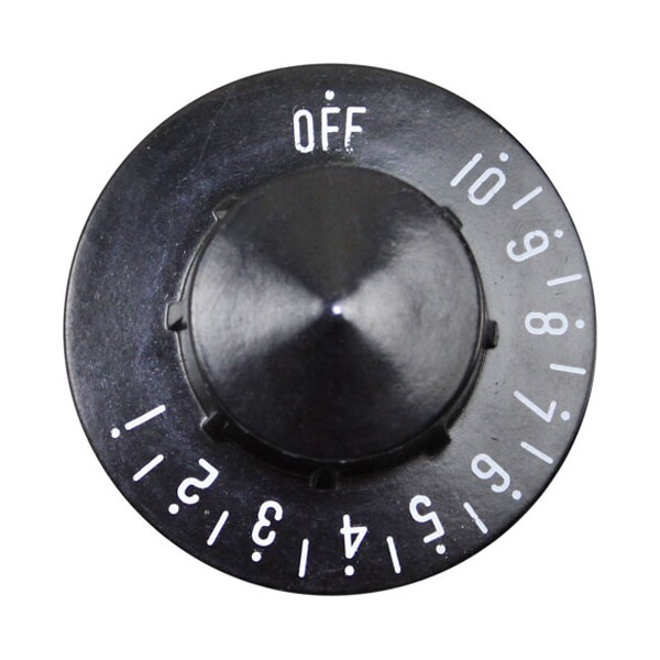 T'Stat/Infinite Switch Knob, Black W/White Print.;[ 2-1/4" Dia ] [ Off-10-1] [Mount .187] [ Flat Down ];Atlas Warmer Wih-D, Wih-M4.;Cecilware;Delfield;Groen Kettle Series: Ae, Ah, Cah, Dcae, Dcee, Dh, Ee, Em,;Hh, Tdb.;Prince Castle Toaster 197, 297;Savory Toaster Series C-20, C-40;Seco Warmer Steam Table Where Applicable.;Vulcan Kettle El, Es, Et