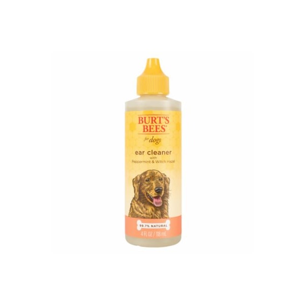 BURTS BEES PEPPERMINT AND WITCH HAZEL EAR CLEANER 4 OZ. Burts Bees uses all natural ingredients because we wanted a powerful but safe way to clean your dogs sensitive ears without any harmful chemicals or irritants. Tap into natures power with Burts Bees for Dogs Ear Cleaner made with Witch Hazel to cleanse the ears remove excess moisture and prevent build up and Peppermint Oil to soothe affected areas. The 99. 9% natural formula is made with the highest quality ingredients. Burts Bees Ear Cleaner For Dogs is pH balanced especially for your dog or puppy and is made in the USA. Pet ear cleaner is 100% SAFE and free of fragrances sulfates colorants and harsh chemicals.