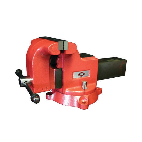 The AFF® 360 degree Swivel Vise with lock down handles securely holds workpieces for woodworking, sawing, drilling and more. The machine ground anvil work surface is ideal for forming and shaping metal. The precision machined, replaceable, hardened steel jaws securely anchor the vise for superior strength and durability.