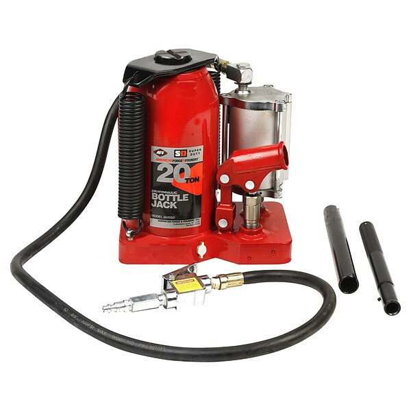 Bottle Jack, Jack Type Bottle Jack, Load Capacity 20 ton, Body Material Steel, Lifting Actuator Manual, Minimum Lift Height 10 3/8 in, Maximum Lift Height 20 5/8 in, Power Source Air/Mechanical, Minimum Height 10 in, Standards ASME PASE 2019, Base Length 9 in, Base Width 5 3/4 in, Body Material Finish Chrome Plated/Powder Coated, Extended Height 20 in