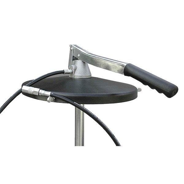 Construction: This durable, high performance grease pump features a heavy duty aluminum head and pumping chamber; The steel construction fits 5-gallon (25-50 lb.) pails. Design: The 48" high-pressure flexible hose has a steel extension and a four-jaw coupler are resilient under high pressure. Application: To precisely apply lubrication, this grease pump is used for clean, high-pressure volume greasing of cars, trucks, equipment or machinery.
