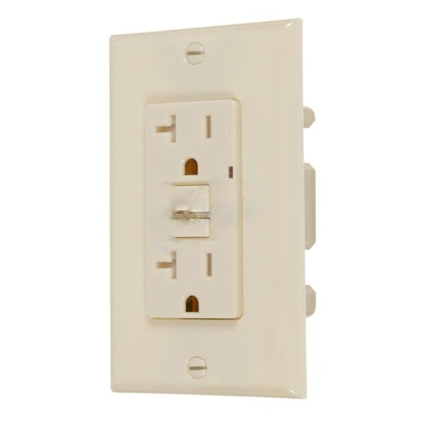 THIS PRODUCT INCLUDES: 1x electrical gfci receptacle in ivory color. AN ADVANCED SELF-TESTING 20A TAMPER-RESISTANT GFCI DUPLEX OUTLET ENGINEERED TO ENHANCE SAFETY MEASURES. THIS OUTLET BOASTS A BUILT-IN SELF-TEST FEATURE THAT ENSURES THE PROPER FUNCTIONING OF THE GROUND FAULT CIRCUIT INTERRUPTER. IT OFFERS RELIABLE PROTECTION AGAINST ELECTRIC SHOCKS AND INCLUDES TAMPER-RESISTANT SHUTTERS TO DETER THE INSERTION OF FOREIGN ITEMS. WITH ITS DUAL SOCKETS, IT CONVENIENTLY COMBINES PRACTICALITY AND SAFETY, CATERING TO THE REQUIREMENTS OF CONTEMPORARY RESIDENCES AND COMMERCIAL SPACES. This electrical gfci receptacle features a rectangle shape with a modern style. This product is made for wall mount installation. DIY installation instructions are included in the box. This electrical gfci receptacle is made with plastic. The primary color of this product is ivory and it comes with ivory hardware. All dimensions are nominal.