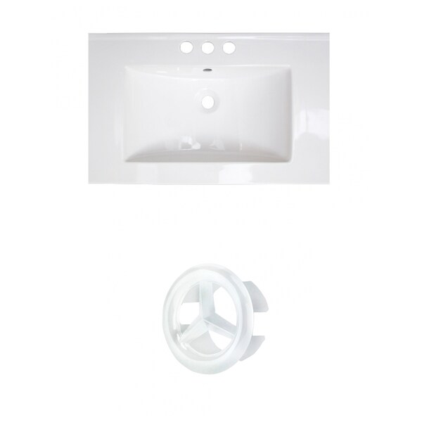 This transitional ceramic top set belongs to the exquisite Vee design series. It features a rectangle shape. This ceramic top set is designed to be installed as a drop in ceramic top set. It is constructed with ceramic. This ceramic top set comes with a enamel glaze finish in White color. It is designed for a 3h4-in. faucet.