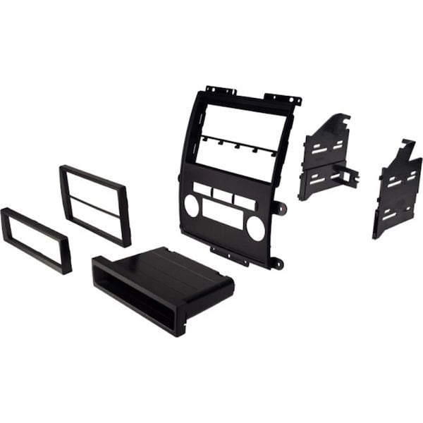 -2009 + Nissan Frontier / Xterra Radio Installation Kit. -Factory textured ABS plastic. -Fits DIN ISO double ISO and double DIN mount radios. -Fits single DIN or single ISO mount radios with pocket or 2 single ISO mount radios. -Recessed DIN opening si