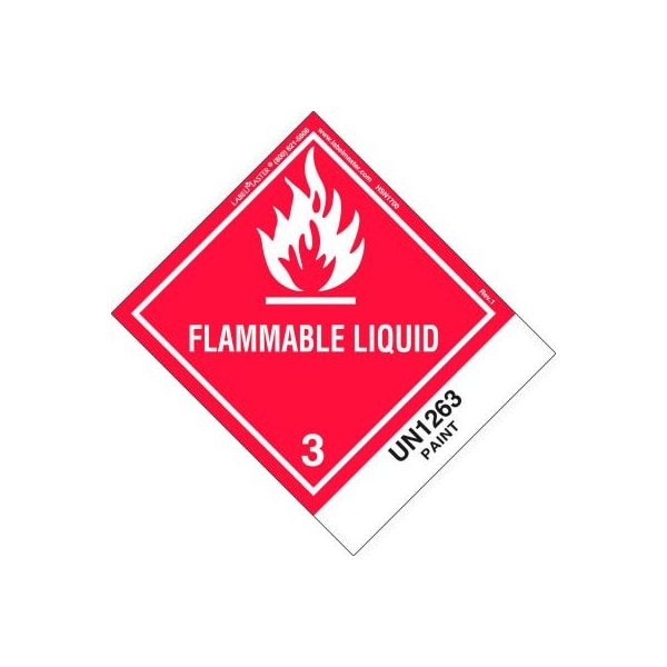 Labelmaster hsn1700 flammable liquid label, un1263 paint, paper, standard tab, 500/roll simplify your shipping label solution with labelmaster's pre-printed shipping name flammable liquid labels, revised to meet the design requirements of 49 cfr 172.407. With the marking requirements of 172.300, the un1263 paint label comes ready for application. In addition to complying with directives set by the dot, these also meet the design and durability standards of 49 cfr, icao and other international air regulations. You'll be worry-free as these hazard class 3 labels are printed with light-fast inks for fade resistance, and adhesives are formulated for use in various climates and environments as well as strong holds on corrugated boxes. Once affixed, they won't fade or fall off. They also feature outstanding chemical and abrasion resistance. Red and white, these paper labels are sized at 100 x 120mm (standard tab) and sold in rolls of 500.