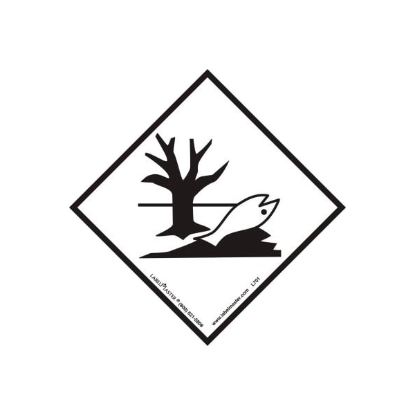 Labelmaster l701 environmentally hazardous substance 100 x 100 mm, 500/roll help shippers and transporters easily identify any liquid or solid material, including its mixtures and solutions that are classified as marine pollutants, with labelmaster's environmentally hazardous substance labels. This dead tree, dead fish marking is part of the globally harmonized system (ghs) and was incorporated into the 14th edition of the united nations model regulations as a clear way to communicate how contaminants from solid waste enter the soil and ground water systems. Pressure-sensitive for easy application, these paper labels measure 100 x 100mm and are sold in rolls of 500.