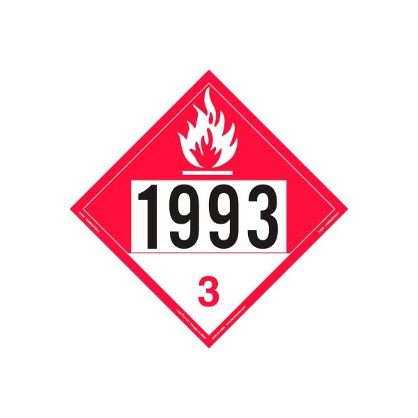 Labelmaster z-idm combustible liquid placard un 1993 permanent vinyl, 25/pack play it safe when transporting dangerous goods with labelmaster's un 1993 combustible liquid placards. Pre-printed with the four-digit un number, these dot placards are what you need for shipping flammable liquids, n.o.s., fuel oil and meeting the requirements of 49 cfr 172.500 for domestic and international shipments of hazardous materials by highway, rail and water. They also pass imo's 90-day sea water immersion test (imdg 5.2.2.2). These hazard 3 placards are printed on permanent vinyl with a high-tactile adhesive backing that makes it ideal for permanent applications or dedicated equipment. They measure 273 x 273mm and are sold in packs of 25 or cases of 900.