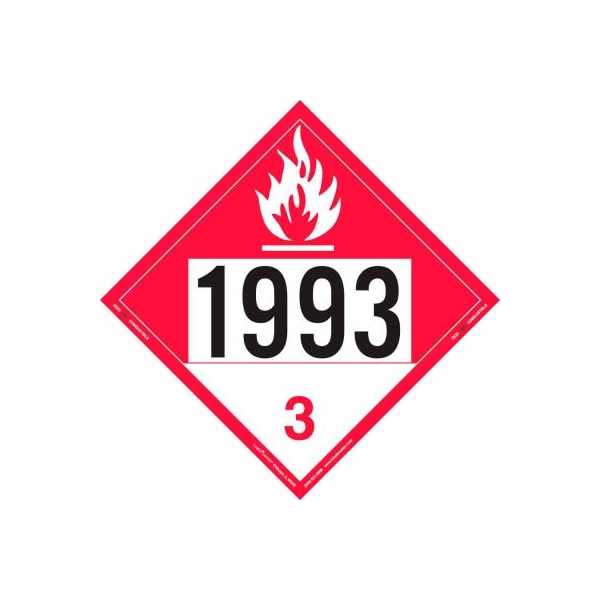 Labelmaster zez91993 combustible liquid placard, un 1993, removable vinyl, 25/pack play it safe when transporting dangerous goods with labelmaster's un 1993 combustible liquid placards. Pre-printed with the four-digit un number, these dot placards are what you need for shipping flammable liquids, n.o.s., fuel oil and meeting the requirements of 49 cfr 172.500 for domestic and international shipments of hazardous materials by highway, rail and water. They are printed on e-z removable vinyl that can be removed with little or no residue remaining on the surface, and is perfect for both long-term and short-term shipping needs. These hazard class 3 placards 273 x 273mm and are sold in packs of 25 or cases of 900.