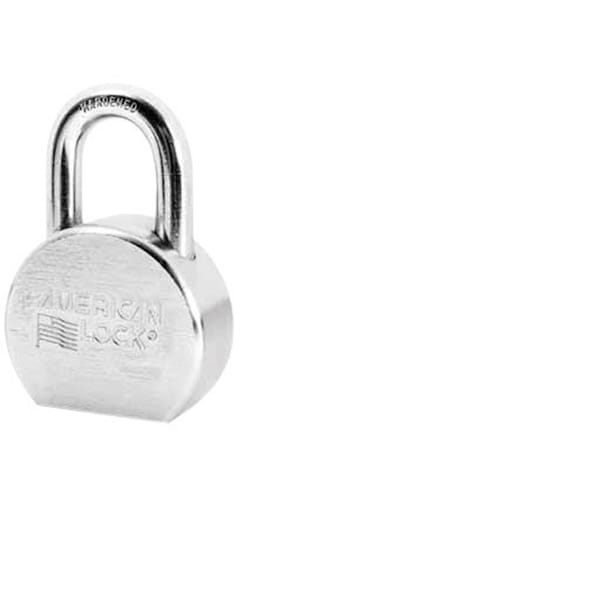 The American Lock solid steel padlock features a 2-1/2 inch (64 mm) wide case hardened solid steel body with a 1-1/16 inch (27 mm) tall 7/16 inch (11 mm) diameter hardened boron alloy shackle for superior cut resistance. A dual ball bearing locking mechanism resists pulling and prying and a 5-pin APTC12 rekeyable cylinder with serrated pins is virtually impossible to pick.