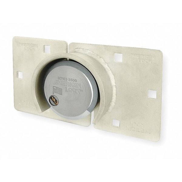 Hidden Shackle Padlock with Hasp, Shackle Dia. 3/8 in, Shackle Material Boron Alloy, Hasp Height 4 1/2 in, Hasp Length 8 3/4 in, Hasp Material Steel, Lock Body Height 2-7/8 In., Lock Body Width 2-7/8 In., Body Dia. 2-7/8 In., Lock Body Thickness 1-1/2 In., Lock Body Material Solid Steel, Shape Round, Color Silver, Number of Pins 6, Key Type Different, Control Key Registration Required No, Weatherability Some Corrosion Resistance