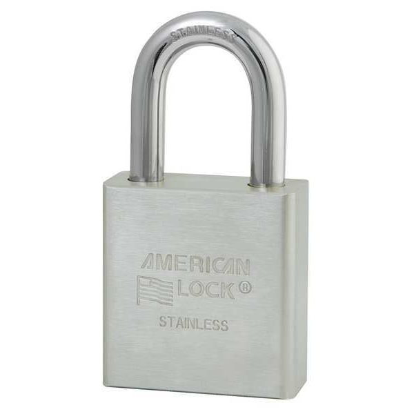 Padlock, Shackle Dia. 5/16 in, Shackle Height 1 1/8 in, Shackle Width 3/4 in, Shackle Material Stainless Steel, Body Height 2 13/32 in, Body Width 1 3/4 in, Body Thickness 3/4 in, Body Material Stainless Steel, Number of Bumpers 0, Number of Pins 5 Pin, Key Type Alike, Control Key Registration Required No, Body Color Silver, Keyway Type American AK5, Weather Resistant Yes, High Security Yes, Interchangeable Core No, Padlock Body Shape Rectangular, Rekeyable Yes, Shackle Type Standard Shackle