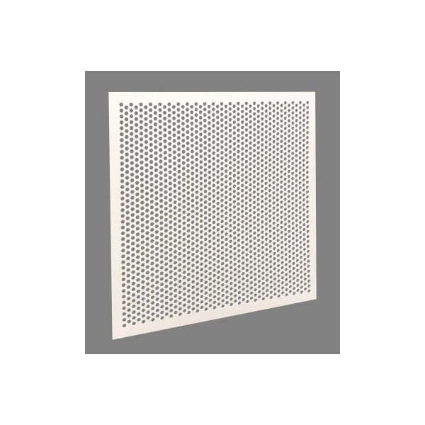 the circular design of the stratus plastic perforated panel creates a stylish, modern look in your ceiling t-grid system. It has a consistent smooth white finish and is shipped with removable plastic film that keeps the panels clean for installation. It fits perfectly into a 2' x 2' grid system and can be easily removed to scrub clean if necessary. The panel will never rust or need painting, won't fade or yellow and won't chip. It's mildew resistant, anti-static, and resists sweating which reduces dust buildup. Holes are 3/8" diameter. Package of 5. Also available in 1/4" and 1/2" diameters. features white circular, 3/8" design creates stylish, modern look overall size 23 " x 23 ", thickness 1/16" holes staggered 60 degrees pitch 14 mm 42% open area flame resistant, meets ul 94hb flame spread test
