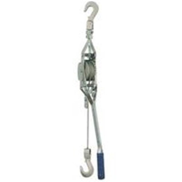 1 ton capacity, 2:1 safety factor for stretching, pulling or bracing/lift up to 0.5 ton capacity 4:1 safety factor. Automatic notch-at-a-time control. Galvanized aircraft cable, plated steel frame/steel parts.