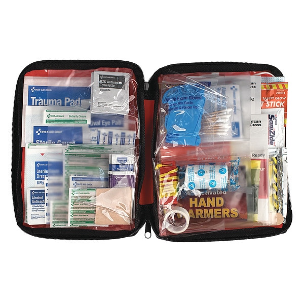 Emergency Preparedness Kit, Number of Components 106, Case Material Nylon, Color Red, Height 7 1/2 in, Length 9-1/4 In., Width 2 7/8 in