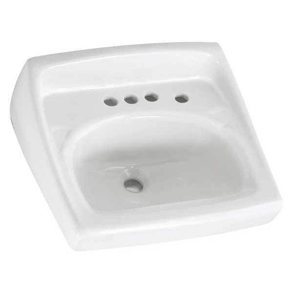 Bathroom Sink, Without Faucet, Mounting Type Wall, Color White, Overall Length 20 1/2 in, Overall Width 18 1/4 in, Bowl Shape D-shaped, Bowl Depth 6 1/2 in, Drain Opening 1 1/4 in, Number of Holes 3, Back Splash Yes, Back Splash Height 4 in, Side Splash Yes, Manufacturers Warranty Length 1 yr, Standards ASME A112.19.2 / CSA B45.1