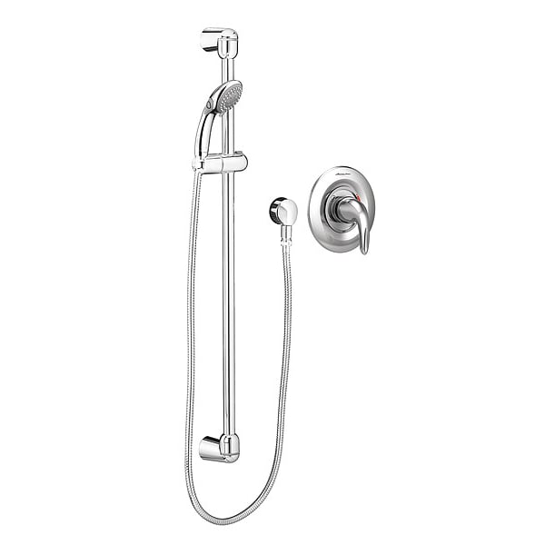 Shower Faucet, ADA Compliance Yes, Non CEC Compliant, Connection Size 1/2 in, FNPT, Face Shape Circle, Faucet Handle Type Lever, Fixed Showerhead Flow Rate 1.5 gpm, Handheld Showerhead Flow Rate 1.5 gpm, Handheld Showerhead Width 3 3/8 in, Number of Handles 1, American Standard, Commercial Series, Shower Connection Type 1/2 in NPT, Showerhead Function Single, Showerhead Material Metal, Plastic, Showerhead Shape Bulb, Showerhead Spray Pattern Regular, Handheld, Trim Finish Polished Chrome