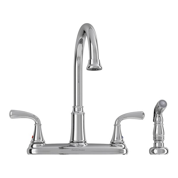 Traditional styling in transition. This two-handle faucet would look great in kitchens with traditional or casual décor. Convenient features include a tall gooseneck swivel spout for extra reach and clearance separate deck-mount spray and fast one-person installation using Speed Connect nuts that tighten by hand.