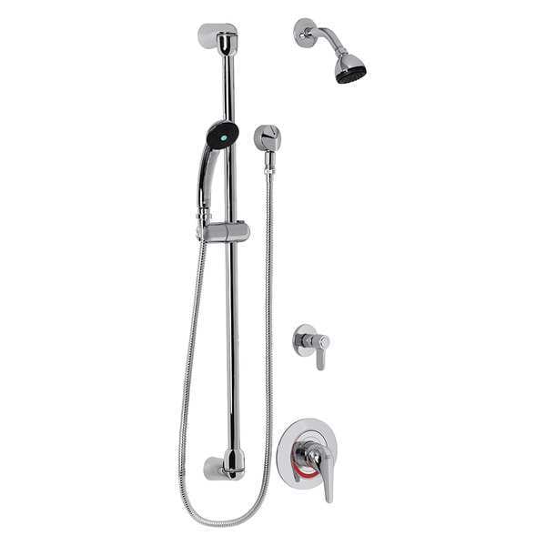 Shower Faucet, ADA Compliance Yes, Non CEC Compliant, Connection Size 1/2 in, FNPT, Face Shape Circle, Faucet Handle Type Lever, Fixed Showerhead Flow Rate 2.5 gpm, Fixed Showerhead Thickness 3 3/4 in, Fixed Showerhead Width 1 7/8 in, Handheld Showerhead Flow Rate 2.5 gpm, Handheld Showerhead Width 3 3/8 in, Number of Handles 1, American Standard, Commercial Series, Shower Connection Type 1/2 in NPT, Showerhead Function Single, Showerhead Material Metal, Plastic, Showerhead Shape Bulb