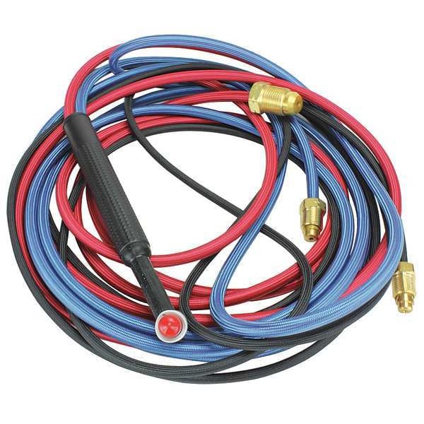 TIG Torch Package, Maximum Current 180 A, Neck Type Rigid, TIG Torch Series 24W, Welding Processes TIG Welding (GTAW), Application Water-Cooled, Compatible with Brand Linde, Cooling Method Water-Cooled, For Maximum Electrode Diameter 3/32 in, For Minimum Electrode Diameter 0.02 in, Gas Hose Included Yes, Gas Hose Length 12 1/2 ft, Gas Hose Material Rubber, Gas Valve Included No, Head Angle 60 Degrees to 90 Degrees , Includes Torch & 12.5 ft Leads Rubber, Model 24W, Number of Pieces 1
