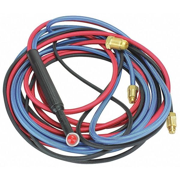 TIG Torch Package, Maximum Current 180 A, Neck Type Rigid, TIG Torch Series 24W, Welding Processes TIG Welding (GTAW), Application Water-Cooled, Compatible with Brand Linde, Cooling Method Water-Cooled, For Maximum Electrode Diameter 3/32 in, For Minimum Electrode Diameter 0.02 in, Gas Hose Included Yes, Gas Hose Length 25 ft, Gas Hose Material Rubber, Gas Valve Included No, Head Angle 60 Degrees to 90 Degrees , Includes Torch & 25 ft Leads Rubber, Model 24W, Number of Pieces 1