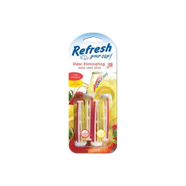 Refresh, 4 Pack, Fresh Strawberry Cool Lemonade, Dual Vent Stick, Fresh Fragrance Without Calling Attention To A Hanging Air Freshener, Clip Discretely Into The Vehicles Vents, Using The Air Flow To Deliver A Clean Fresh Scent Eliminate Odors, Perfect For Car Dashboard Vent, Home, Office, Gym Bag, Luggage