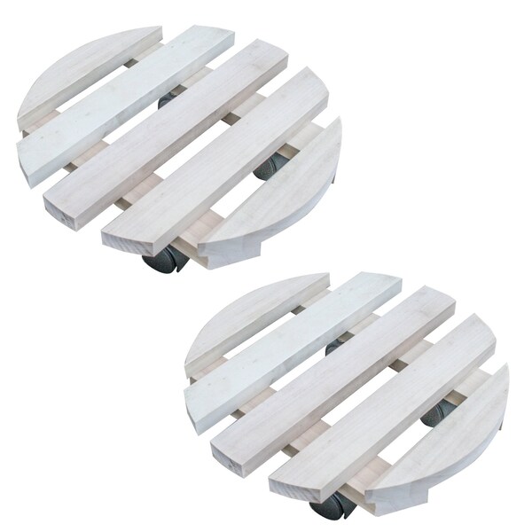 Make moving big planters easier with the AmeriHome 2 Piece Rolling Wood Plant Caddies. Easily move your plants to water, turn for even growth, or adjust for seasonal lighting. Constructed of white poplar with 2 plastic locking casters and 2 rolling casters, each caddy can hold up to 110 lbs, supporting every the largest of potted plants. Perfect under large rubber tree plants, ficus trees, big monsteras, or prickly cactus plants.