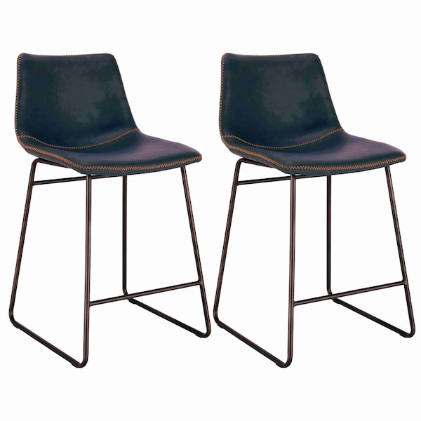 Classic Faux Leather 24" Counter Height Chair Set, Black, PR
