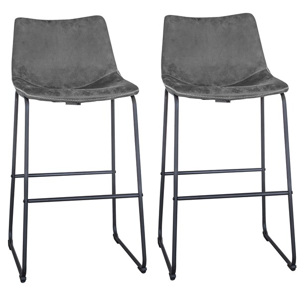 Classic Faux Leather Bar Chair Set, Gray, PK2