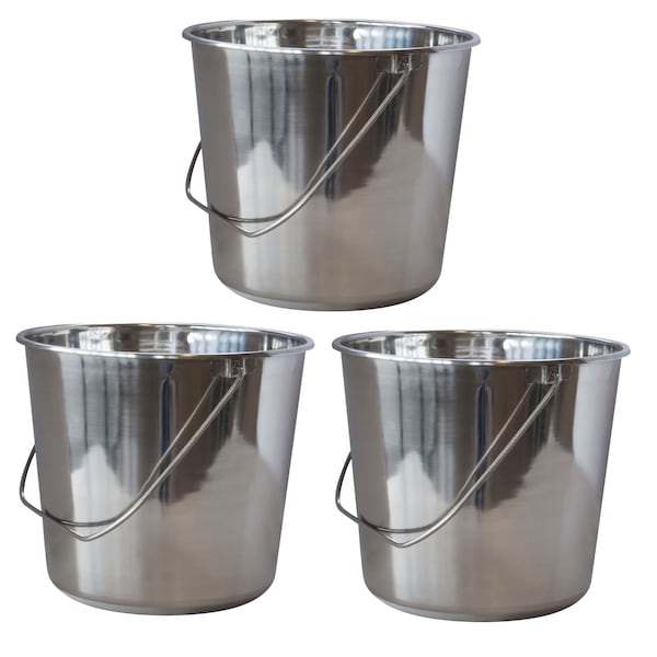Set includes 3 identical metal buckets: 4.22 Gallons, 16.9 Quarts, 16 Liters